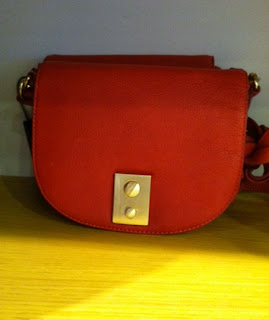 This leather saddle is absolutely to die for! The gold clasp were inspired by a suitcase lock. The exterior has a back- wall zip pocket while the interior also has a back- wall patch pocket made with cotton twill lining. Also, there is adjustable shoulder straps! When I was looking at the price tag, I found another tag that basically told customers that this color may come off on your clothes. Oh no! The retail price is $148.